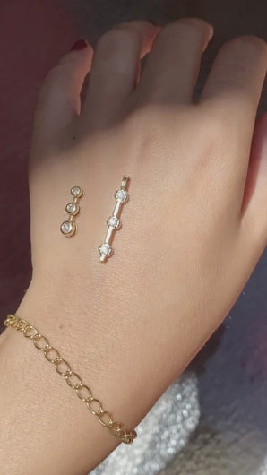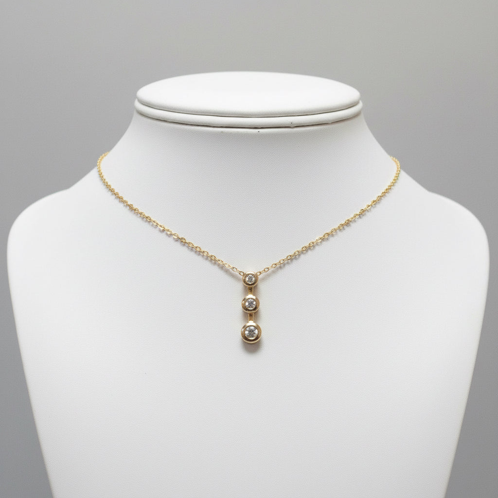 Vintage 10k yellow gold bezel diamond drop journey pendant with 3 brilliant cut diamonds. Chain not included.