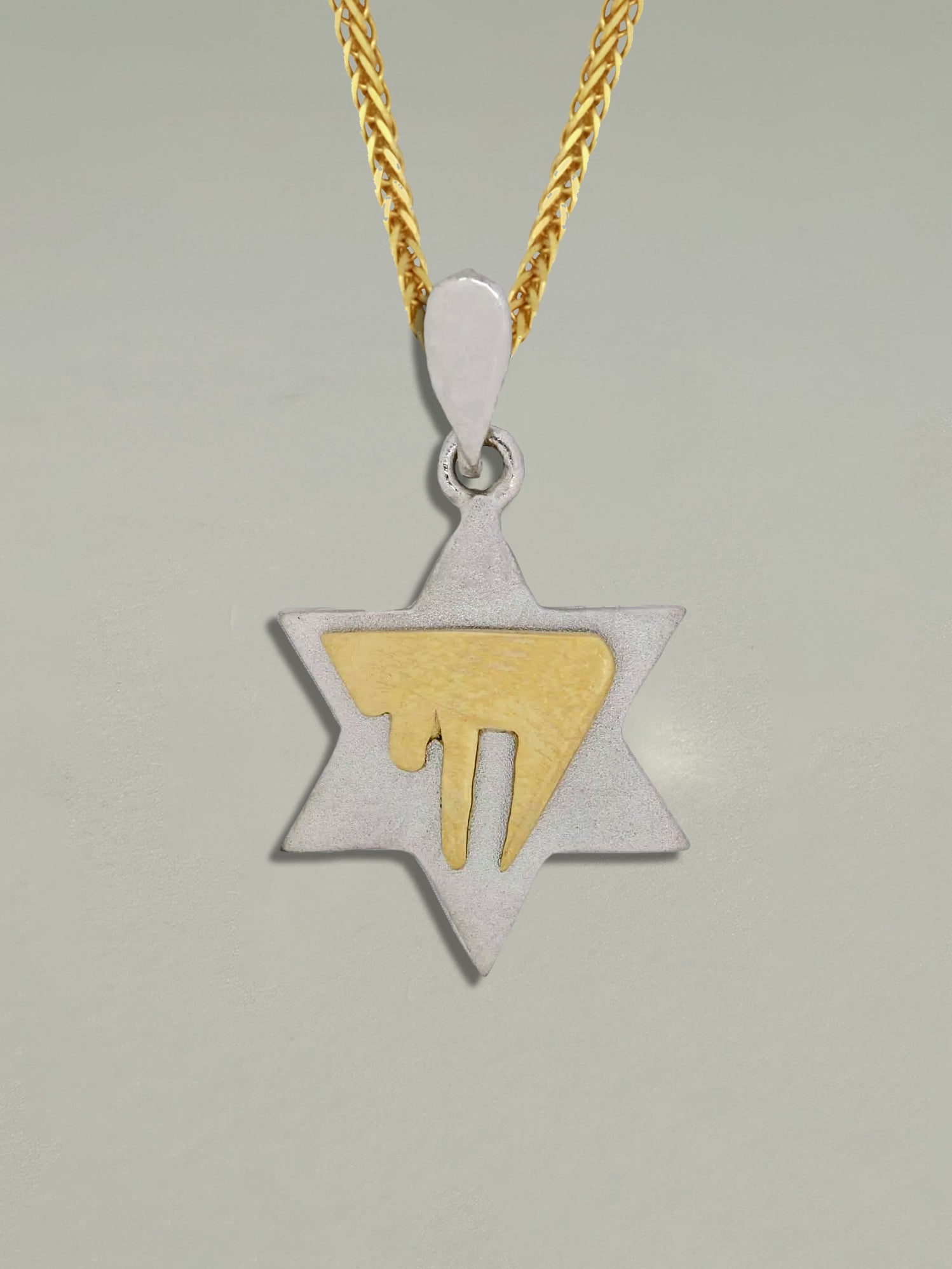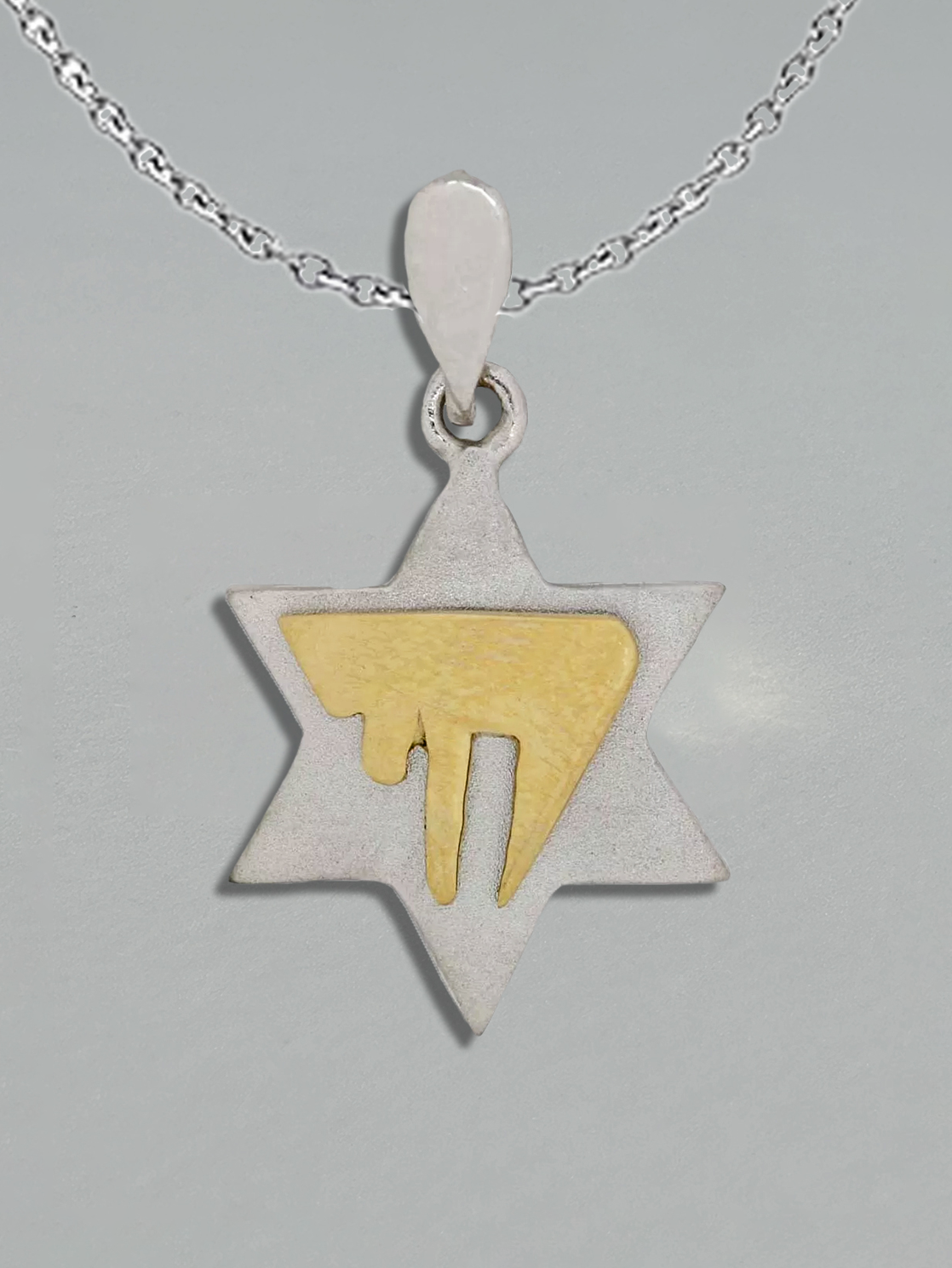 Vintage Judaica Two Tone Chai Star of David Pendant